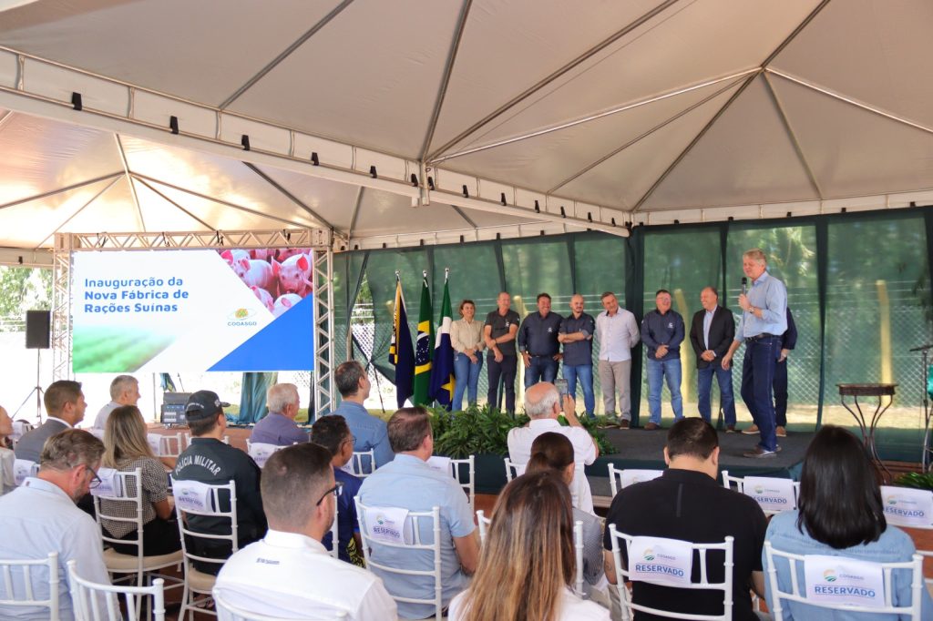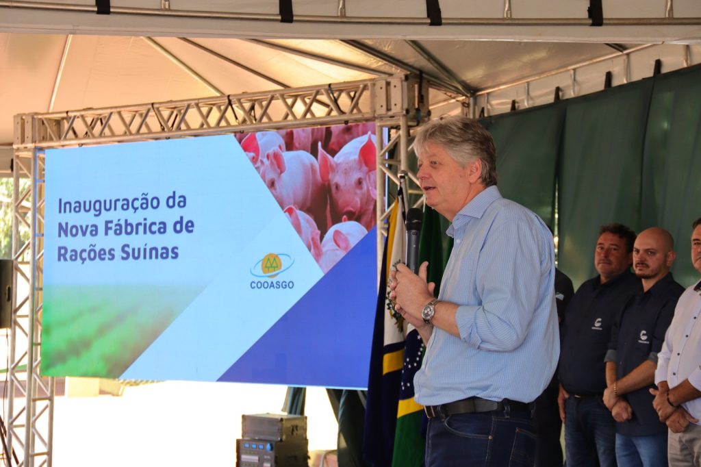 Referindo-se especificamente à principal atividade dos cooperados da Cooasgo, o secretário disse que “fica muito feliz” ao passar pela rodovia e ver o frigorífico da Aurora, gigante brasileira na fabricação de embutidos a partir da carne suína e também bovina e de aves. “Somos referência nacional em suinocultura, temos orgulho disso”, afirmou Verruck. A Cooasgo é associada à Aurora, que absorve a produção de suínos de seus cooperados.