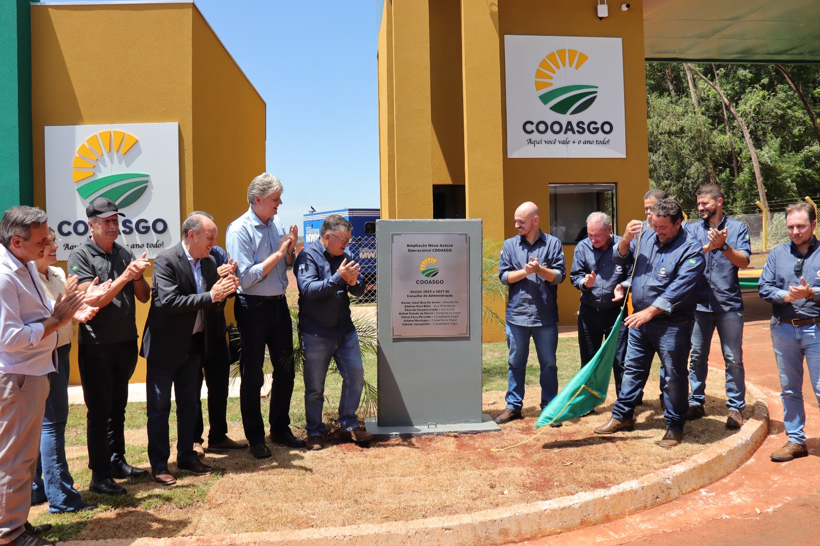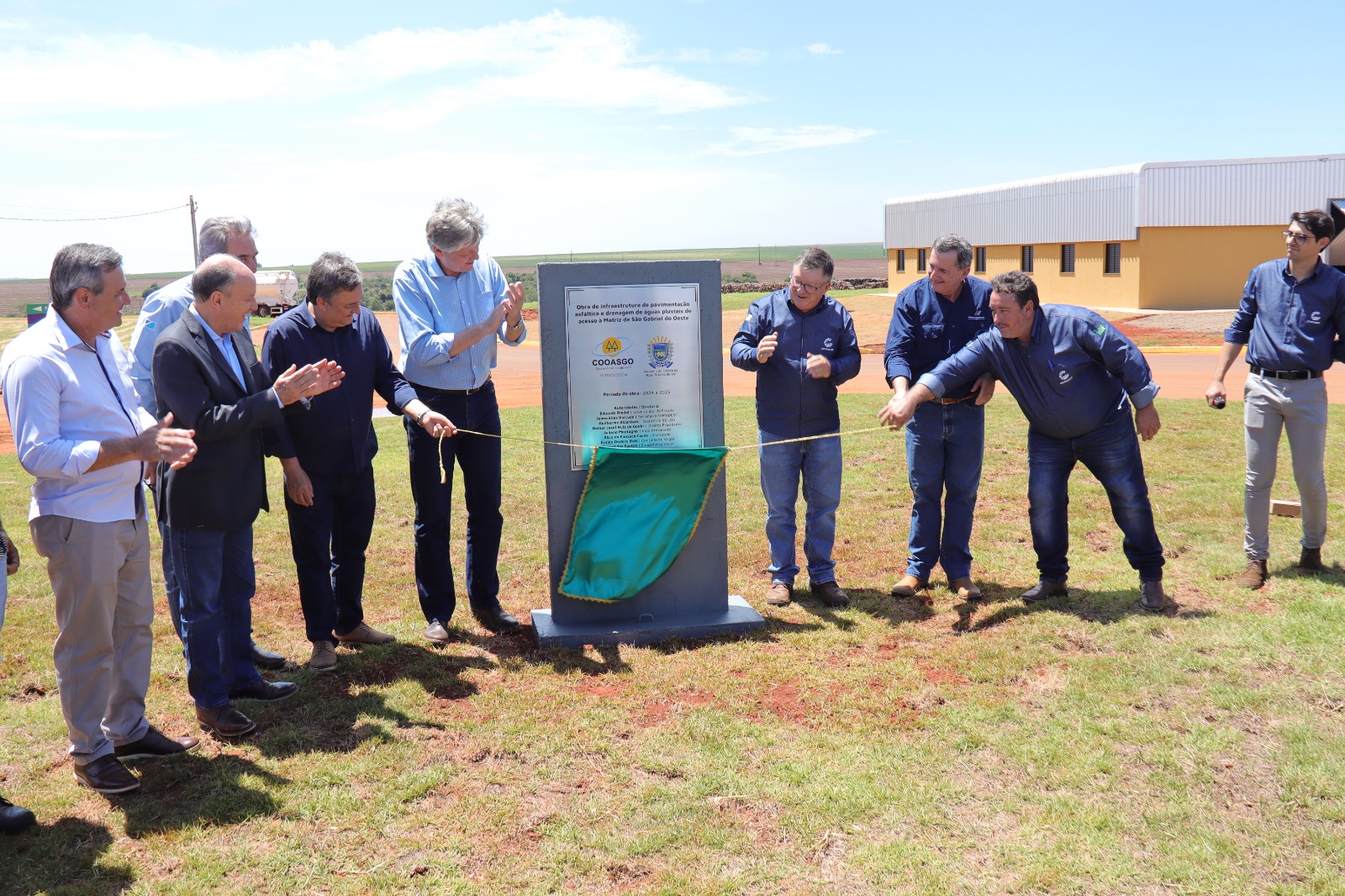• A Cooasgo (Cooperativa Agropecuária de São Gabriel do Oeste) inaugurou na manhã dessa quinta-feira o acesso operacional e amplo pátio de estacionamento para carga e descarga de sua nova fábrica de rações, ato que marcou ainda o 33º aniversário de fundação do empreendimento. O secretário de Meio Ambiente, Desenvolvimento, Ciência, Tecnologia e Inovação (Semadesc), Jaime Verruck, representou o Governo do Estado no evento e descerrou as placas inaugurais ao lado do presidente da Cooasgo, Rainer Josef De Goehr e demais diretores da empresa e autoridades convidadas.