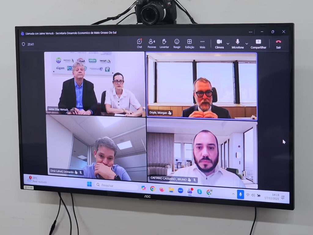 O secretário de Estado de Meio Ambiente, Desenvolvimento, Ciência, Tecnologia e Inovação (Semadesc), Jaime Verruck, esteve reunido ontem (17) com o gerente-geral do Departamento Regional de Países do Cone Sul do Banco Interamericano de Desenvolvimento (BID), Morgan Doyle, e sua equipe técnica. Também participou do encontro a assessora de Integração do Corredor Bioceânico, Danniele Paiva.