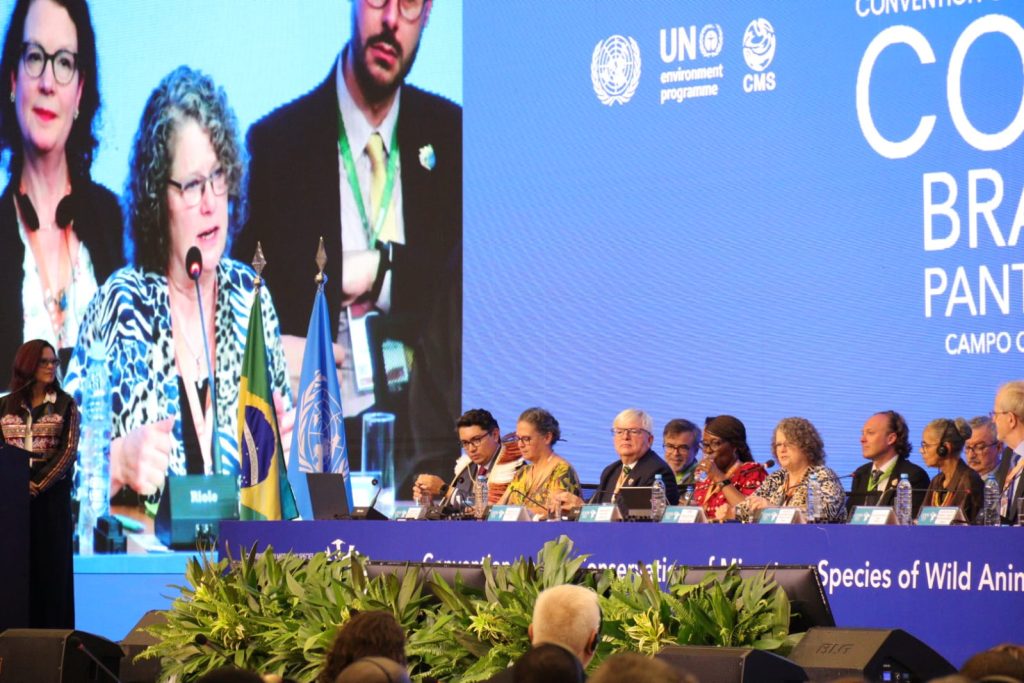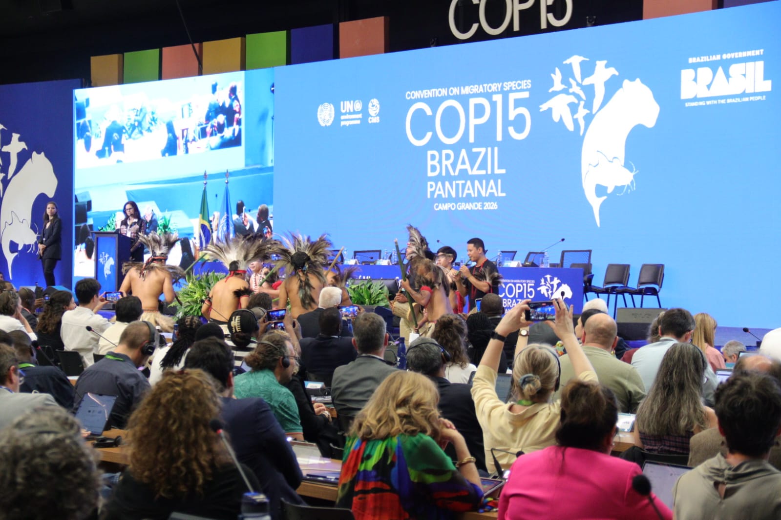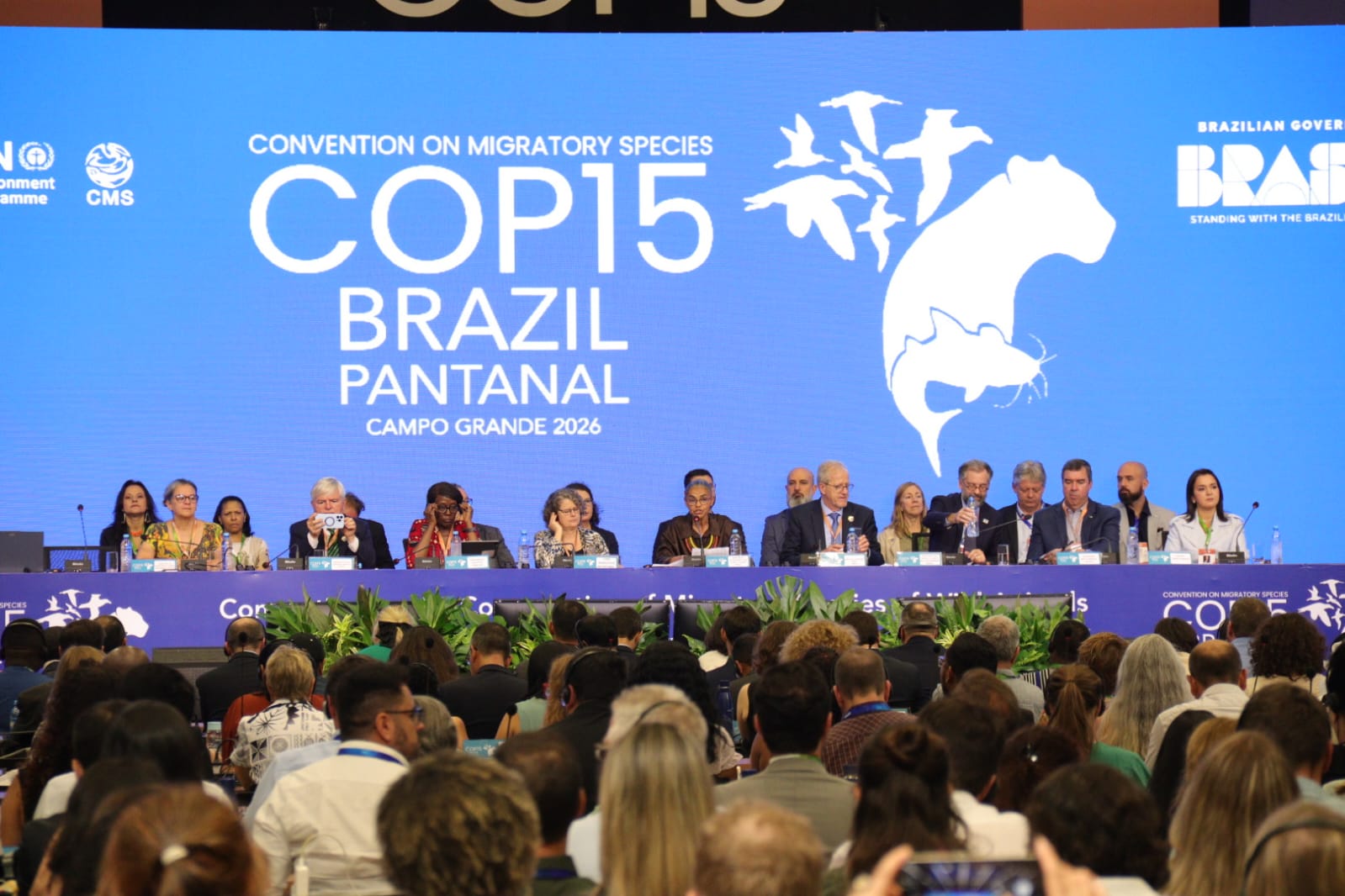 O secretário Jaime Verruck, da Semadesc (Secretaria de Meio Ambiente, Desenvolvimento, Ciência, Tecnologia e Inovação) e o secretário adjunto, Artur Falcette, participaram na manhã desta segunda-feira (23) da abertura da programação da COP 15, em Campo Grande. Ao lado do governador Eduardo Riedel, da ministra do Meio Ambiente e Mudança do Clima, Marina Silva; do presidente da conferência, João Paulo Capobianco e de autoridades nacionais e internacionais, acompanharam a cerimônia que marca o início de uma agenda global voltada à conservação das espécies migratórias e ao enfrentamento das mudanças climáticas. O evento reúne representantes de mais de uma centena de países e posiciona Mato Grosso do Sul no centro do debate ambiental internacional.