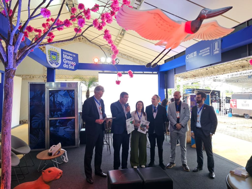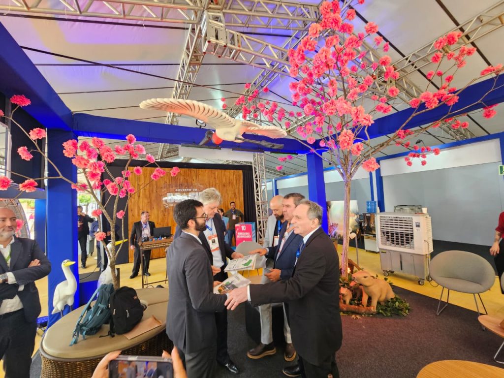 Na sequência, os representantes da Semadesc estiveram no estande de Mato Grosso do Sul para acompanhar a entrega do Anuário Estadual de Políticas Climáticas, elaborado pelo Centro Brasil no Clima (CBC). O documento reúne indicadores e análises sobre o estágio das políticas climáticas nos estados brasileiros e aponta Mato Grosso do Sul como referência nacional em governança, sendo o único a cumprir integralmente os critérios estruturais voltados à agenda climática.