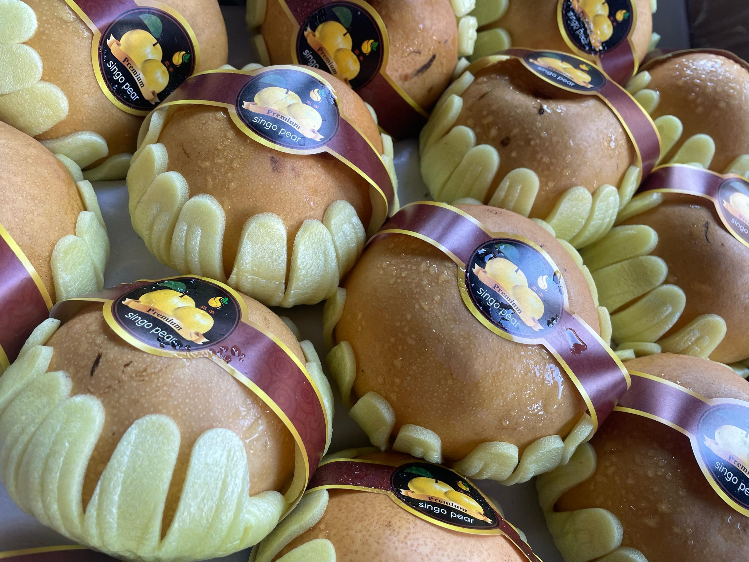 Outra fruta premium que eventualmente pode ser encontrada na Ceasa/MS e que chama atenção já na apresentação é a pera asiática Singo Pear. Cada unidade chega ao entreposto rotulada individualmente e protegida por pequenas ‘pétalas’ de isopor, que evitam danos durante o transporte. A manutenção em baixas temperaturas também é essencial para preservar sua qualidade.