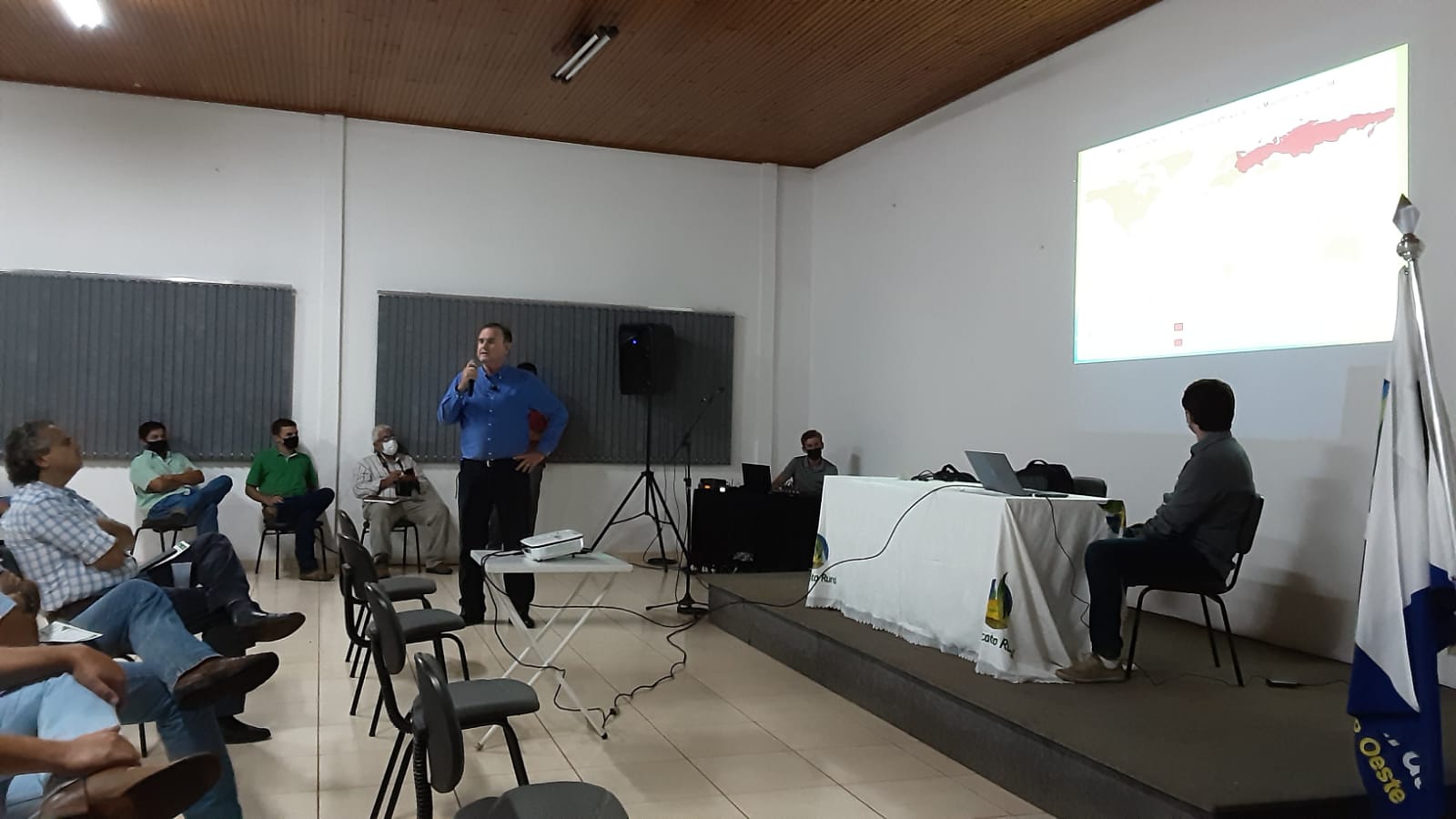 O encontro aconteceu no Centro de Treinamento, localizado no Parque de Exposições Balduíno Maffissoni e contou com a presença do prefeito de São Gabriel do Oeste, Jeferson Tomazoni, do secretário de Desenvolvimento Econômico do município, Roberto Emiliani Júnior, de Infraestrutura e Trânsito, Eris de Oliveira Barbosa, do presidente da Cooasgo, Sergio Marcon, e do vice-presidente do Sindicato Rural, Renê Miranda, além de diversos produtores rurais locais.