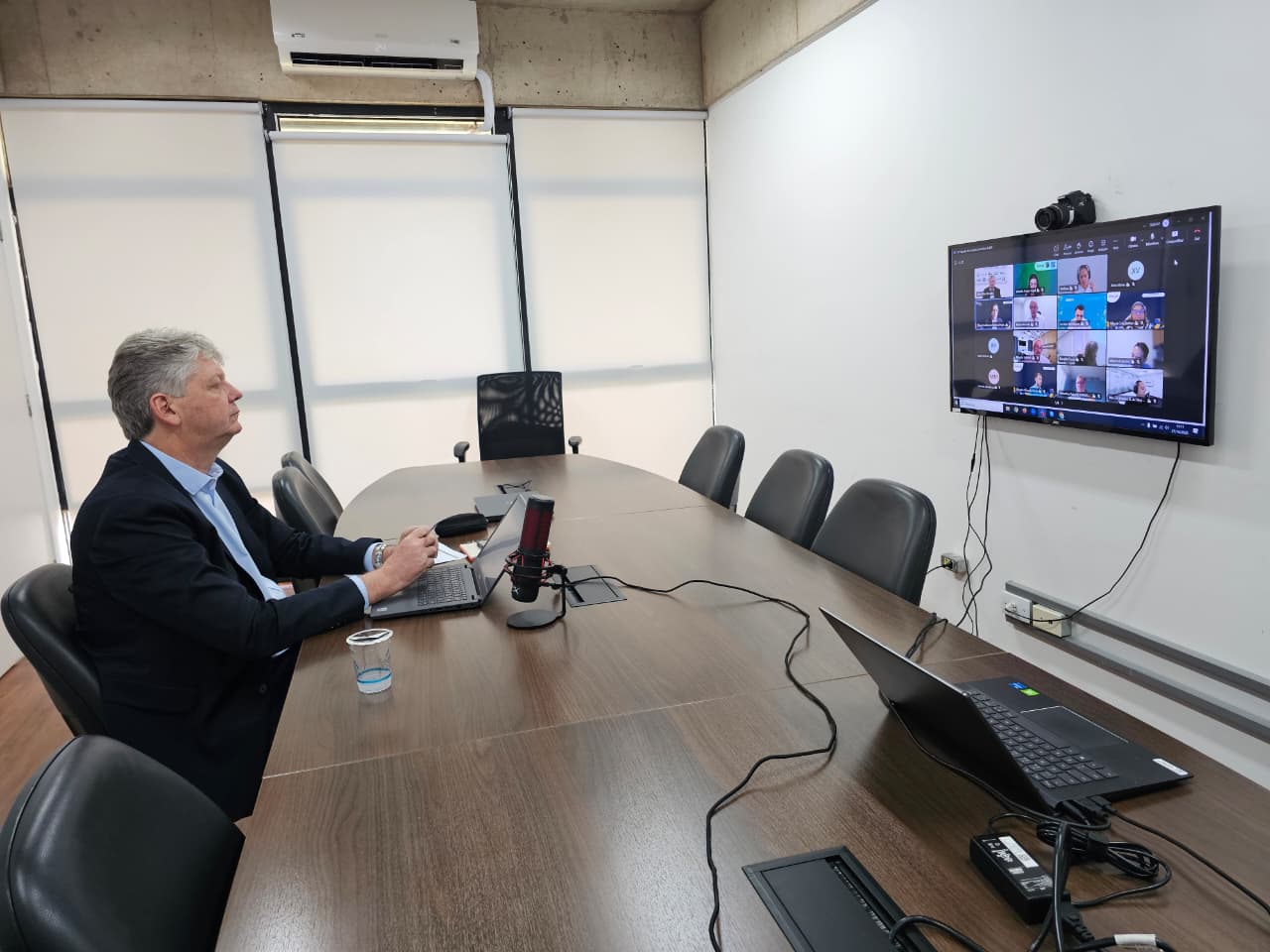 • O secretário Jaime Verruck, da Semadesc (Secretaria de Meio Ambiente, Desenvolvimento, Ciência, Tecnologia e Inovação), participou na segunda-feira (27) da 27ª Reunião do Conselho Consultivo da Empresa de Pesquisa Energética (Concepe-EPE), representando o Fórum Nacional de Secretários de Minas e Energia. Durante o encontro, foram debatidos temas estratégicos para o setor energético brasileiro, entre eles o “Estudo da Demanda Energética da Irrigação”, apresentado pelo professor Afonso Santos, com apoio da CNA (Confederação da Agricultura e Pecuária do Brasil); as fontes de financiamento para o planejamento energético; o armazenamento de energia e o Plano Integrado de Infraestrutura.
