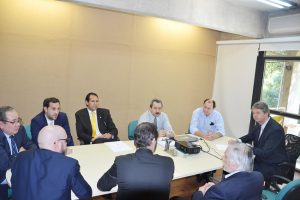 As negociações para viabilizar as exportações sul-mato-grossenses pela Hidrovia Paraguai-Paraná com embarques em Concepcion se desenrolam desde meados de 2016. Uma delegação de autoridades e empresários paraguaios esteve em Campo Grande no dia 22 de junho daquele ano (foto) tratando do assunto. Jaime Verruck recebeu em seu gabinete a comitiva paraguaia e encaminhou as medidas necessárias para viabilizar o acordo.