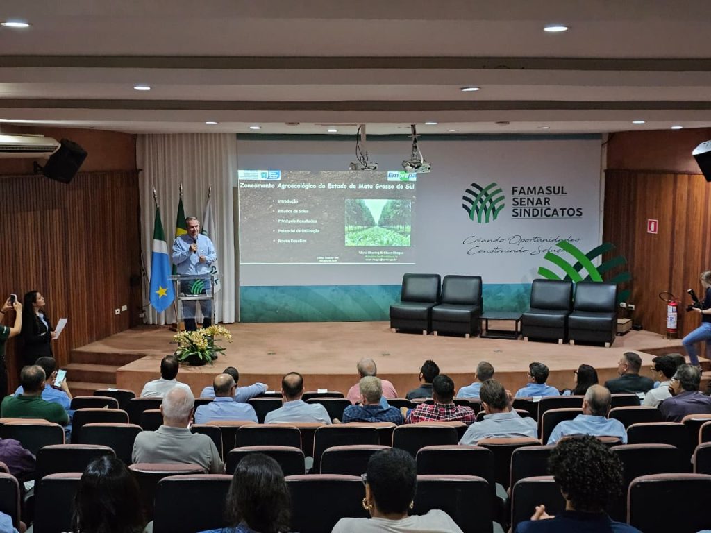 O secretário-executivo da SEMADESC, Rogério Beretta, enfatizou que o trabalho é o maior compilado de informações de solo do Brasil. “É um trabalho realizado em parceria com a Embrapa Solos do Rio de Janeiro e com a equipe da SEMADESC. Trata-se de um amplo estudo baseado numa série de informações muito grande. Mais de 3.500 pontos de amostragem de solo e mais de 3.000 pontos de análise de perfil de solo que fazem com que a gente tenha hoje o estudo mais completo de solos do Brasil. Mato do Sul hoje, como dito pelos próprios pesquisadores da Embrapa, tem a base de dados mais completa sobre os solos considerando o Brasil todo. Então isso dá para gente uma série de informações, desde a área ambiental, que vai permitir com que a gente saiba antecipadamente quais são as áreas de maior risco, de erosão, quais são as áreas mais suscetíveis à degradação, assim como também para o produtor”, explicou.