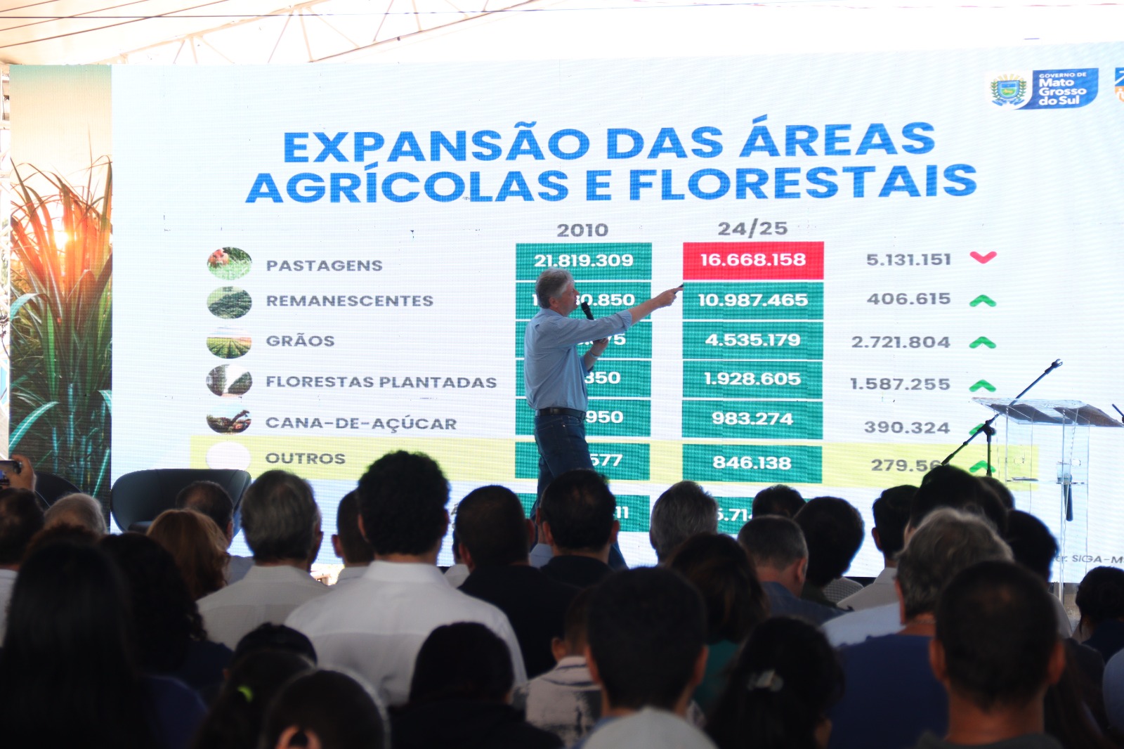 Segundo ele, nos últimos anos, Mato Grosso do Sul passou por uma transformação produtiva significativa, com a conversão de áreas de pastagens de baixa produtividade em lavouras, florestas plantadas e cana-de-açúcar. O modelo alia crescimento econômico à preservação ambiental, mantendo cerca de 38% do território com vegetação nativa.