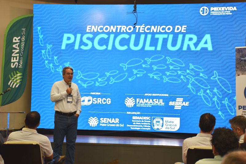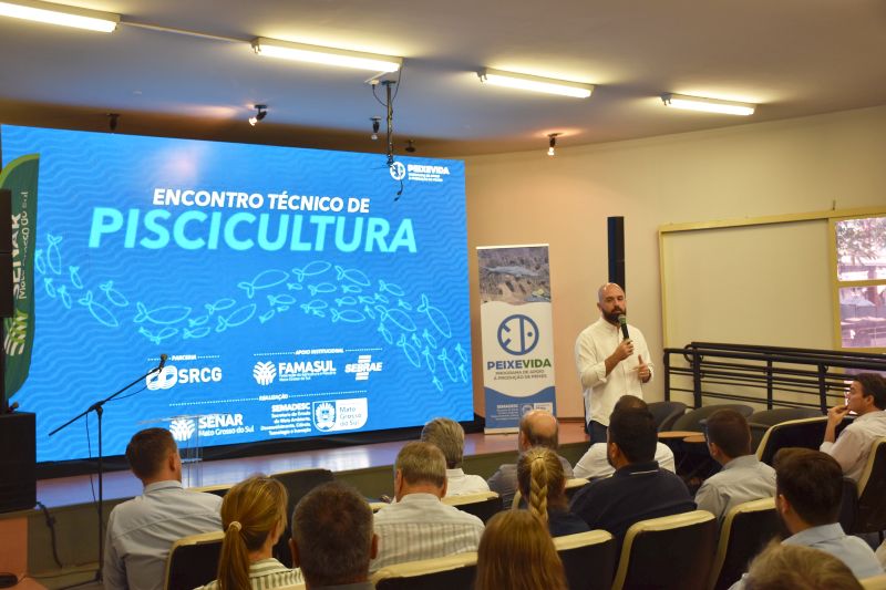 Para fortalecer ainda mais a cadeia produtiva, o Governo do Estado, por meio da Secretaria de Meio Ambiente, Desenvolvimento, Ciência, Tecnologia e Inovação (Semadesc), promoveu nesta terça-feira (14) o Encontro Técnico de Piscicultura, no auditório da Acrissul, em Campo Grande, durante a Expogrande. O evento reuniu produtores, industriais, técnicos e pesquisadores para debater inovação, mercado e eficiência produtiva.