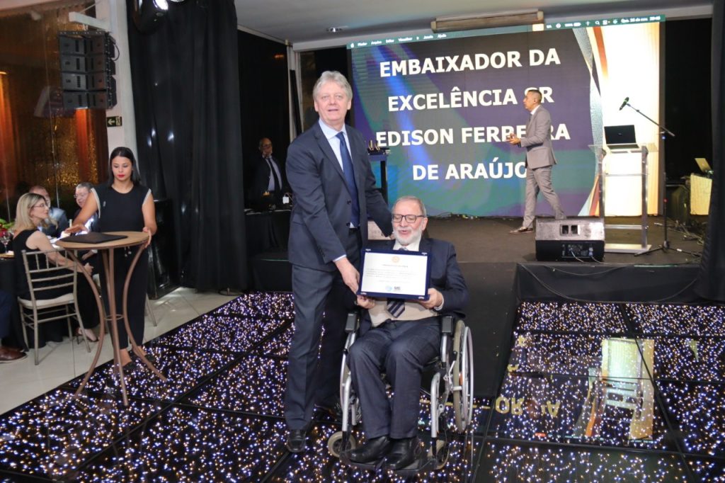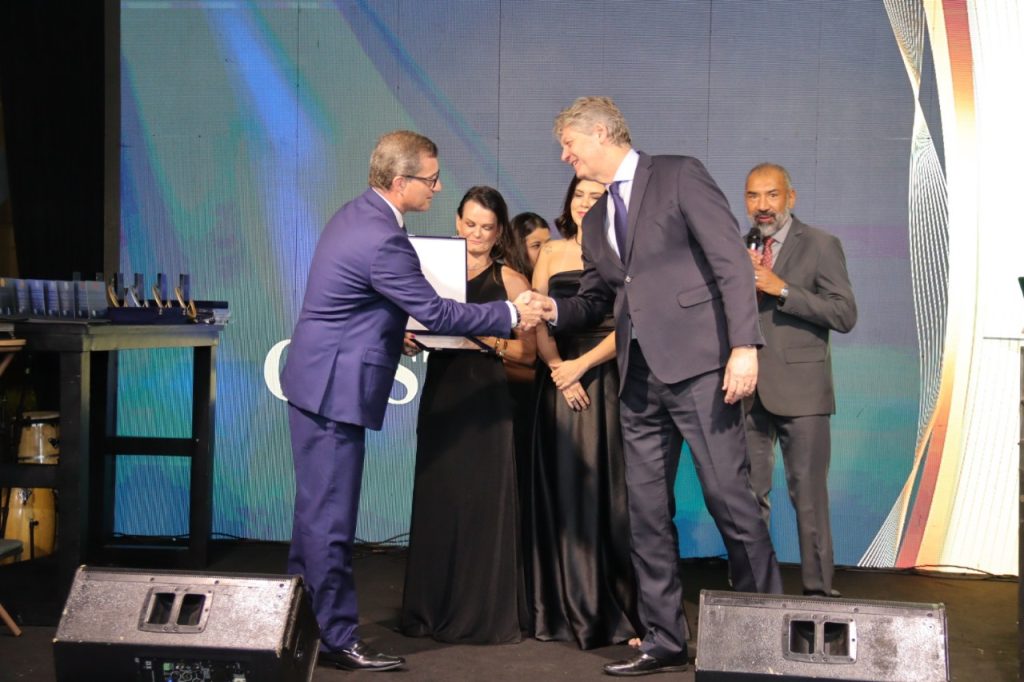 O secretário Jaime Verruck representou o governador Eduardo Riedel na noite de quarta-feira (26) durante a cerimônia de entrega do Prêmio Excelência em Gestão 2025, considerada a maior celebração das boas práticas de gestão em Mato Grosso do Sul. Conhecido como o “Oscar da Gestão”, o evento completou 21 anos destacando organizações públicas, privadas e do terceiro setor que adotam modelos de gestão baseados em eficiência, inovação e melhoria contínua. Nesta edição, o secretário realizou a entrega da comenda de Embaixador da Excelência ao presidente do Sistema Comércio, Edison Araújo, do prêmio Gestão Gov à Prefeitura de Três Lagoas, além dos Prêmios de Excelência (prata e ouro) e dos reconhecimentos Primeiros Passos para a Excelência e Qualidade da Gestão MS 2025.