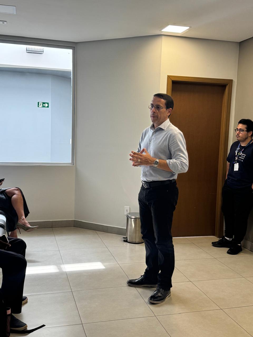 O secretário-executivo de Qualificação Profissional e Trabalho, Esaú Aguiar, realizou a apresentação institucional do Programa Voucher Desenvolvedor II, destacando a relevância estratégica da formação na área de tecnologia e as amplas oportunidades existentes no mercado de trabalho.