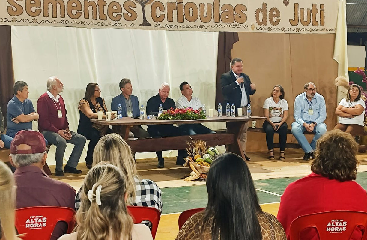 A solenidade contou com a presença de autoridades como o prefeito de Juti, Gilson Marcos da Cruz; o secretário da Casa Civil, Eduardo Rocha; o representante da Embrapa Pantanal, Alberto Feinden; o reitor da Universidade Federal da Grande Dourados (UFGD), professor Jones Dari Goettert; e o presidente da Associação de Produtores Orgânicos de Mato Grosso do Sul (Apoms), Olácio Mamoru Komori.