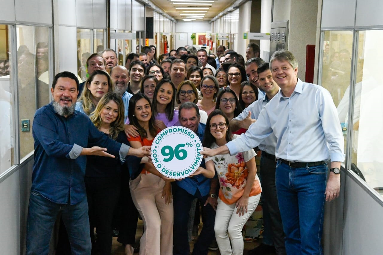 Secretário Jaime Verruck, secretário-adjunto Ricardo Senna, superintendentes e funcionários comemoraram a marca de 96% das metas atingidas na Semagro – Fotos Bruno Rezende/Segov